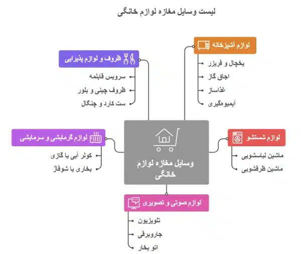 به طور کلی لیست وسایل مغازه لوازم خانگی شامل موارد زیر است: