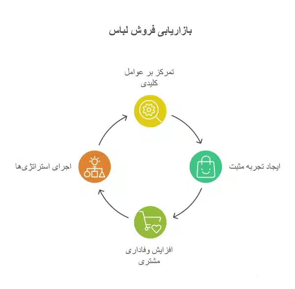 در بازاریابی فروش لباس، باید بر سه عامل ظاهر، کیفیت و قیمت تمرکز کرد. برای مثال، تحقیقات بازاریابی نشان داده است که مشتریانی که تنها یک بار در فروشگاه تجربه خرید مثبت داشتهاند، با احتمال 70 درصد باز هم به همان فروشگاه بازمیگردند. برخی راهکارهای بازاریابی حرفهای عبارتند از: